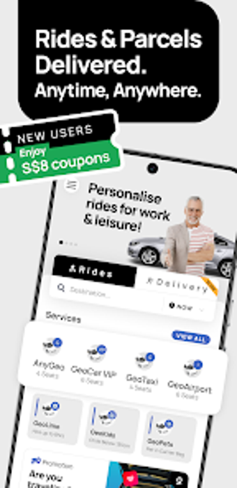 Geolah to innowacyjna aplikacja mobilna dostępna na platformie Android, która łączy usługi przewozu osób oraz dostawy paczek. Użytkownicy mogą wybierać spośród wielu opcji transportowych, w tym przewozów osobowych, jak GeoCar XL czy GeoTaxi, a także specjalnych usług dla dzieci i osób z niepełnosprawnościami. Dzięki różnorodnym pojazdom, od limuzyn po minibusy, Geolah dostosowuje się do różnych potrzeb klientów, oferując wygodę i elastyczność w podróżach.